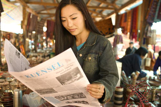 A young woman reading Kuensel, the oldest newspaper in Bhutan, at the market in the capital, Thimphu. Photo: Mikkel Østergaard
