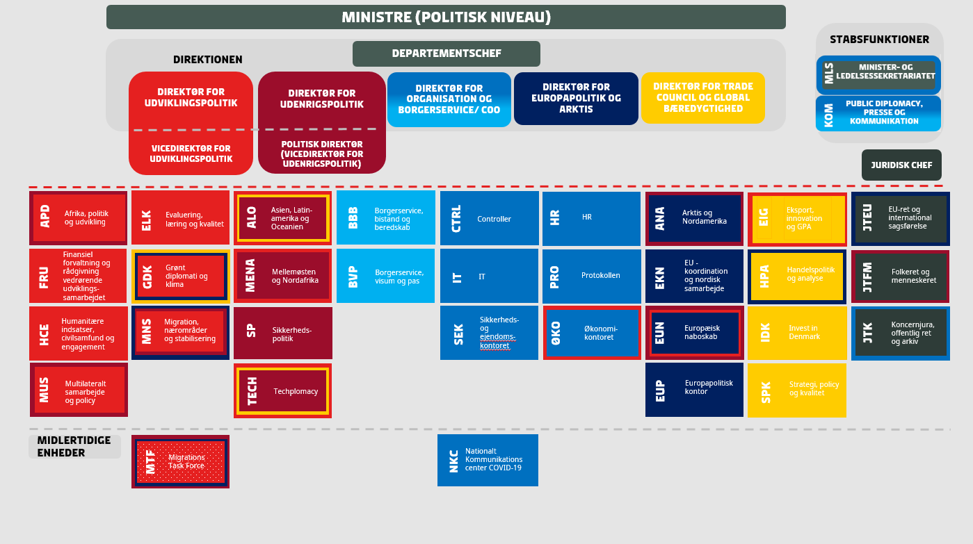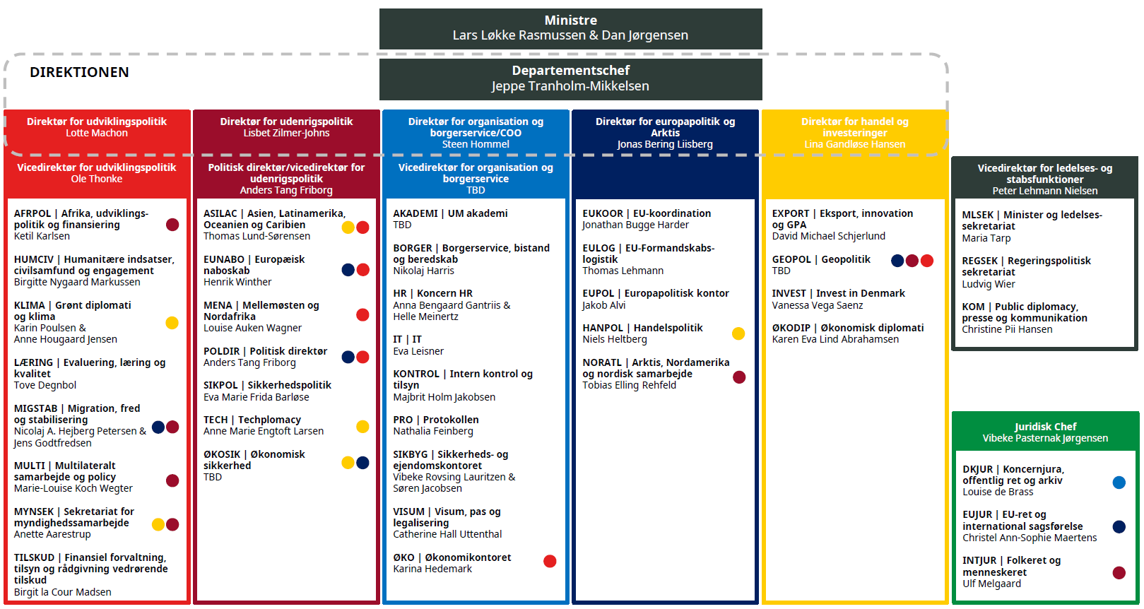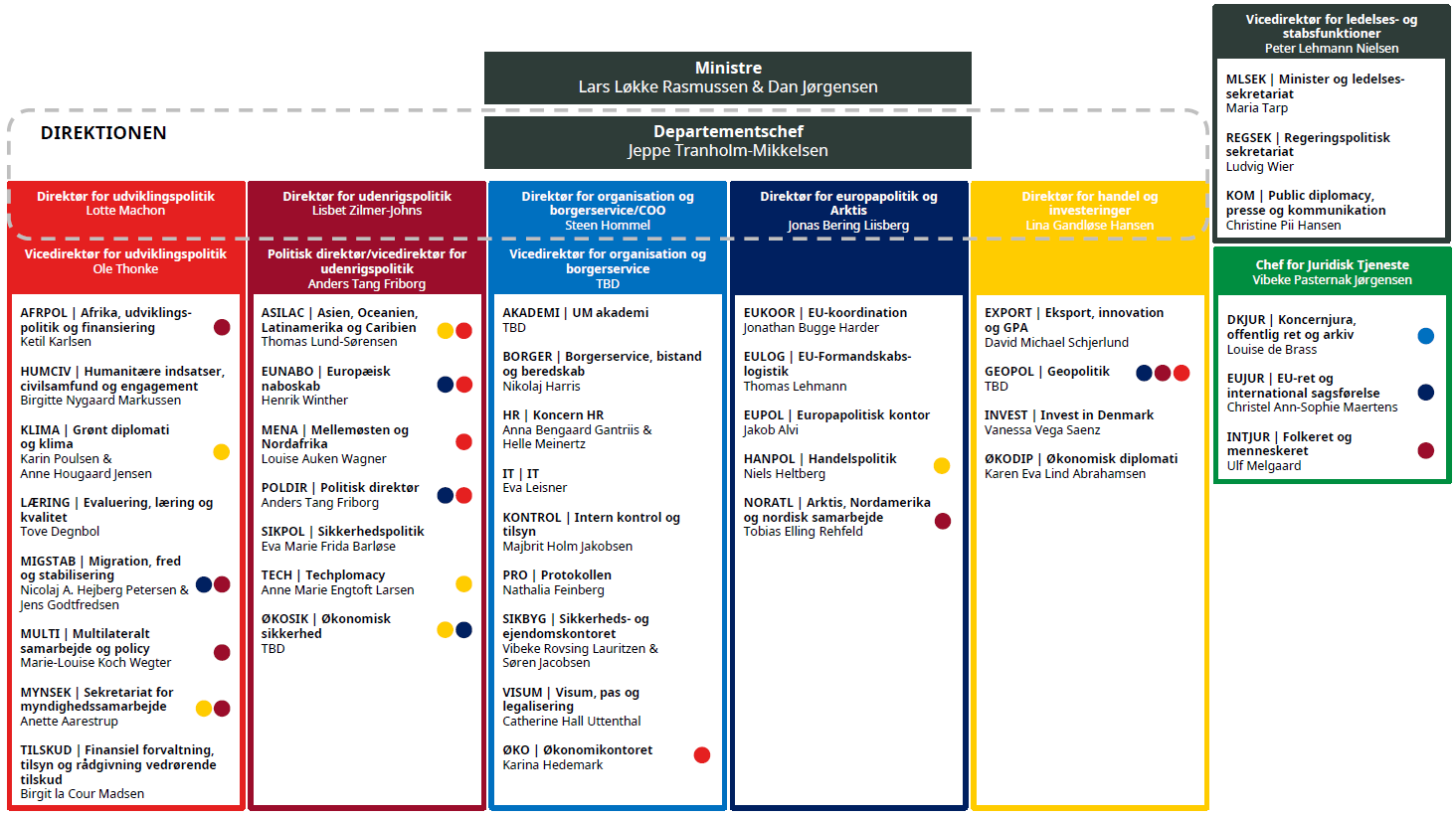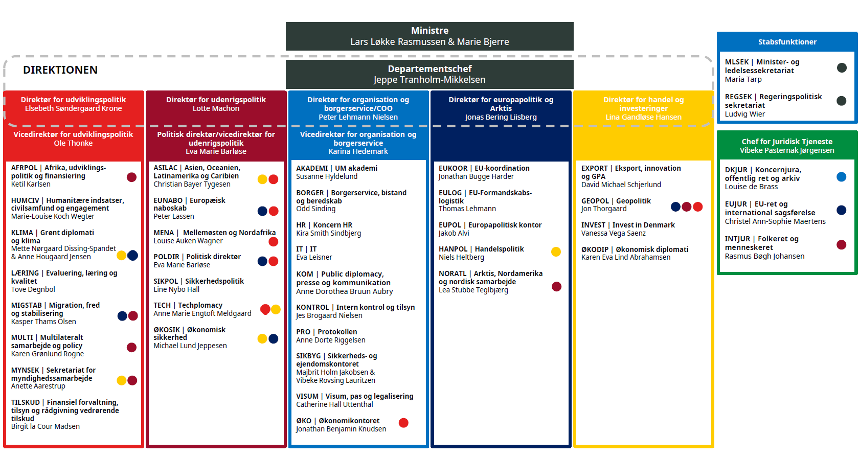 Organigrammet beskriver Udenrigsministeriets organisation i København.